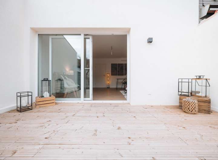 - Neuer Terrassenanbau mit großem ebenerdigen Schiebeelement zum Garten