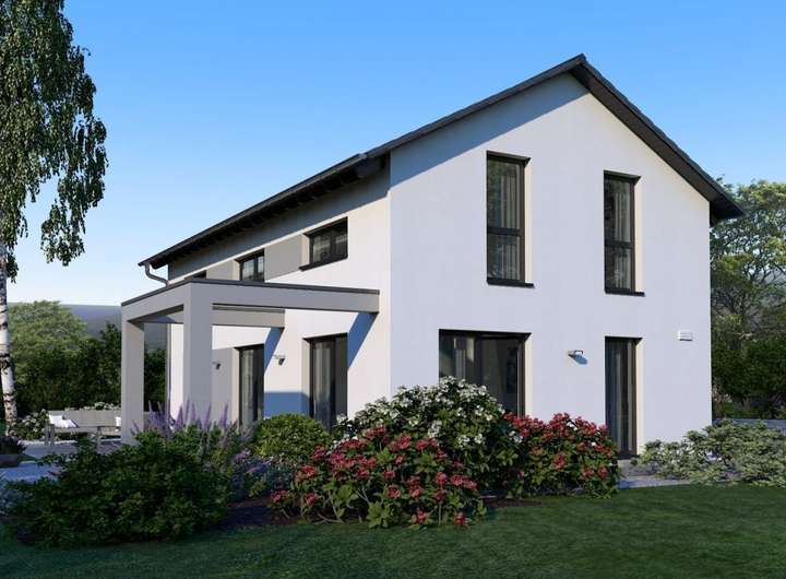 Viel Raum, um Ihre Wohnträume zu verwirklichen, hält das Design 5 bereit. Auf einer Fläche von rund 162 m² bieten sich Ihnen vielfältige Nutzungsoptionen. Der großzügige Wohn-, Ess- und Küchenbereich ist der perfekte Mittelpunkt des Familienlebens. Von dort aus ermöglichen Terrassentüren einen direkten Zugang ins Freie - und sorgen zudem für lichtdurchflutete Räume. Ein 11 m² großer Hauswirtschaftsraum, eine direkt an die Küche angeschlossene Speisekammer sowie ein Gäste-WC runden das Angebot im Erdgeschoss ab. Vom einladenden Flur führt eine Treppe ins Obergeschoss, das neben einem Elternschlafzimmer und einem Bad noch drei weitere Räume bereithält: Kinderzimmer, Büro oder Gästezimmer - Ihrer Fantasie sind keine Grenzen gesetzt.