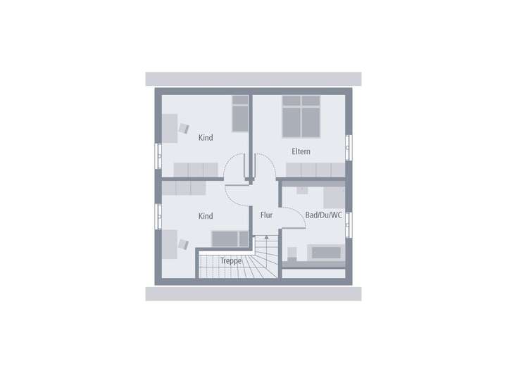Bauherren mit geringerem Raumbedarf oder kleinem Grundstück finden mit Design 8 die perfekte Lösung. Der Satteldachklassiker in Kubusform überzeugt mit hohem Wohnkomfort und lässt keine Wünsche offen. Größe und reichlich Freiraum offeriert der im Erdgeschoss offen gehaltene Grundriss. Drinnen und draußen scheinen hier förmlich zu verschmelzen, denn gleich vier Türen ermöglichen einen direkten Zugang aus dem Wohn- in den Außenbereich. Und auch in der oberen Etage hält das Tageslicht dank bodentiefer Fenster rundum Einzug. Raumnutzung und -aufteilung sind flexibel: Schlafen, Büro, Kinder, Gäste? Alles ist möglich.