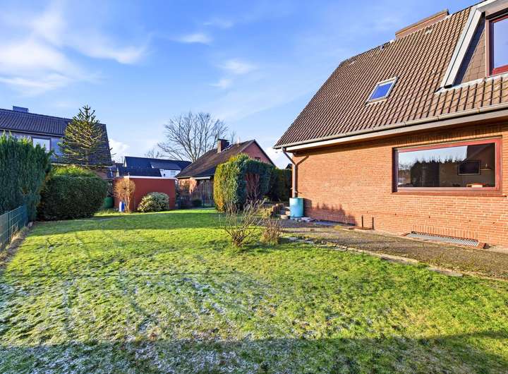 Das großzügige Eckgrundstück mit charmantem Garten rundet dieses attraktive Angebot stimmig ab.