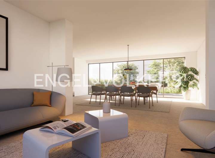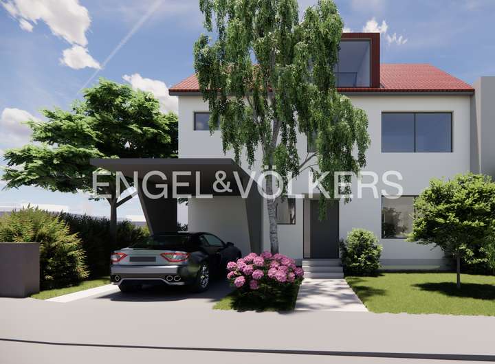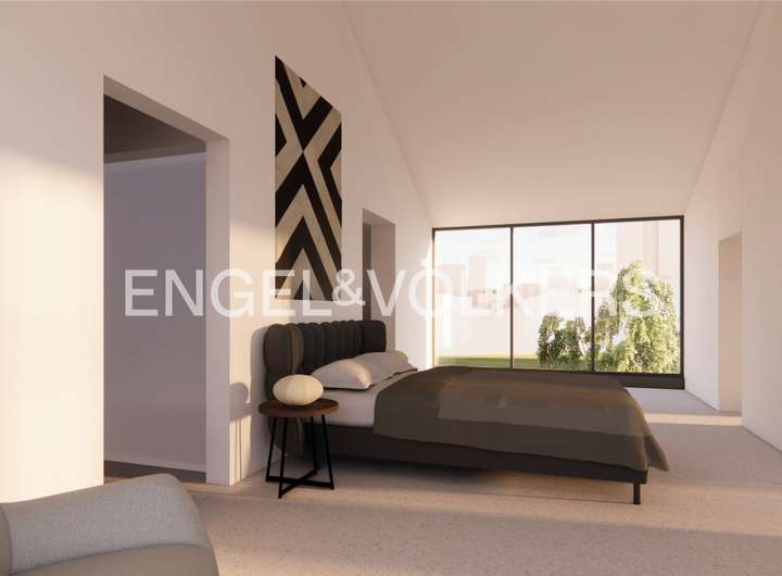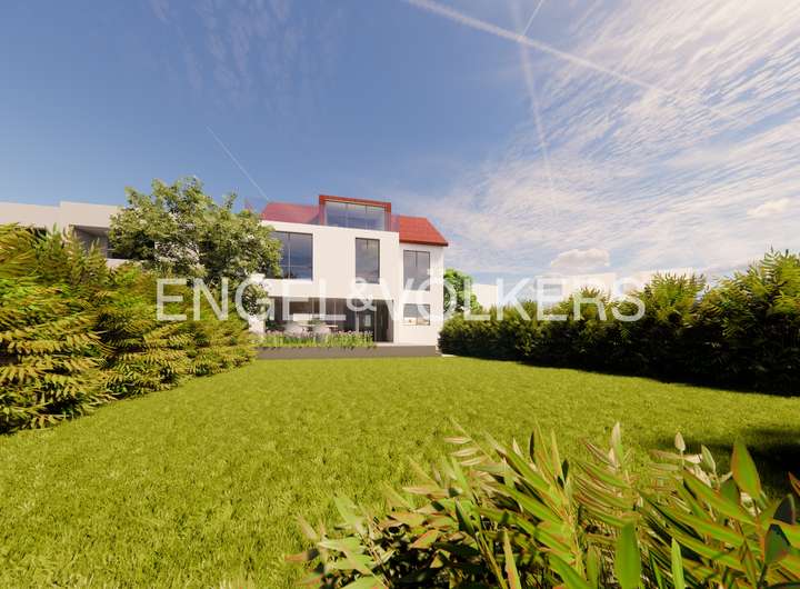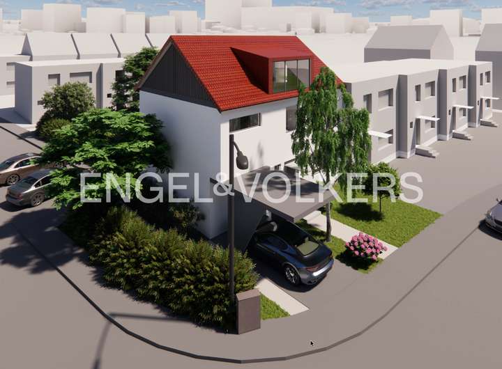 Auf dem reichlich bemessenen Eckgrundstück bestehen zudem Erweiterungsmöglichkeiten. Ein Anbau sowie ein zusätzliches Geschoss mit Satteldach sind möglich. Die gezeigten Visualisierungen eines international tätigen Architekturbüros entsprechen der bereits genehmigten Bauvoranfrage. Die Wohnfläche wächst dabei auf ca. 210 m².