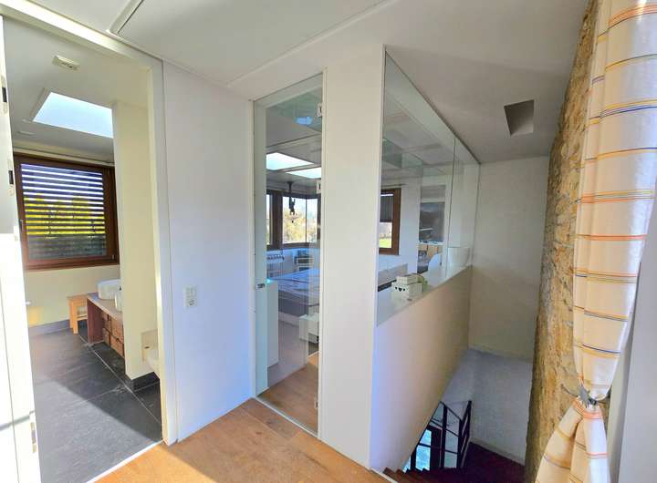 Besonders hervorzuheben ist die Flexibilität des Grundrisses: Das Haus mit seinen 5,5 Zimmern bietet die Option, einen Teilbereich als Einliegerwohnung mit separatem Hauszugang zu nutzen. Ob für die Großeltern, als autarker Bereich für die Kinder oder als exklusives Home-Office mit eigenem Zugang – hier passt sich das Haus Ihren Lebensumständen und individuellen Lebensbedürfnissen an.