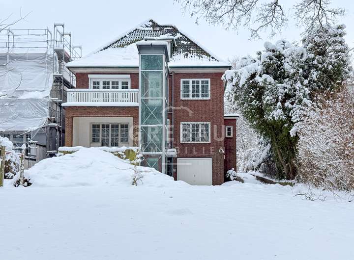 Um 1927 wurde diese Villa im Stil einer typischen Hamburger Kaffeemühle auf einem großen Grundstück in bester Lage von Blankenese erbaut. Viele Stilelemente aus der Bauzeit, wie u.a. die großzügigen, durch Schiebetüren getrennten Räumlichkeiten im Erdgeschoss und das große Eichenfischgrätparkett, lassen auch heute noch den repräsentativen Charakter dieses Hauses erahnen. Zuletzt wurde es mit zwei Wohneinheiten und zwei separaten Eingängen genutzt. Unter anderem durch die Wiederherstellung der offenen Treppe im Erdgeschoss ist auch die Nutzung als großzügiges Familiendomizil, mit z.B. einer „Kinderebene (3 Zimmer plus Bad/ WC)“ im Obergeschoss und einer „Elternebene (Masterbedroom mit Bad/ WC etc.)“ im Dachgeschoss denkbar. Die technische und optische Ausstattung ist weitestgehend erneuerungsbedürftig.
