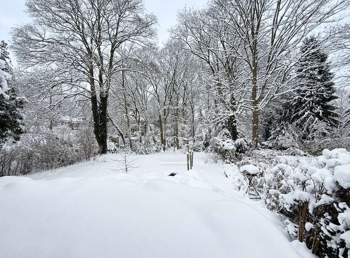 - großes Grundstück, u.a. mit Rasenflächen, Rhododendren und altem Baumbestand