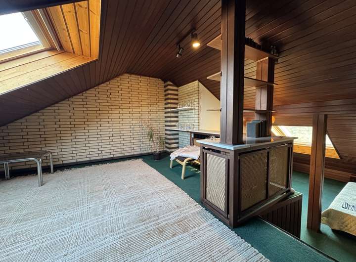 Derzeit stehen insgesamt vier Zimmer zur Verfügung. Ursprünglich war das Schlafzimmer zur Gartenseite in zwei separate Räume aufgeteilt, sodass sich die Zimmeranzahl bei Bedarf mit überschaubarem Aufwand erhöhen lässt. Das nachträglich ausgebaute Dachgeschoss bietet zusätzliche Fläche, die nicht in der Wohnfläche enthalten ist. Ergänzend ist die Immobilie teilunterkellert und bietet hier weitere Abstellfläche für Dinge des nicht alltäglichen Bedarfs.
