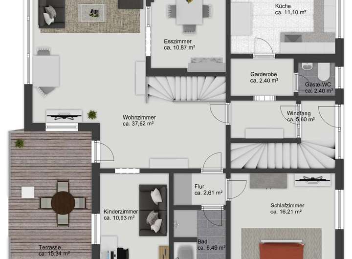 - ca. 114 m² Wohnfläche im Erdgeschoss