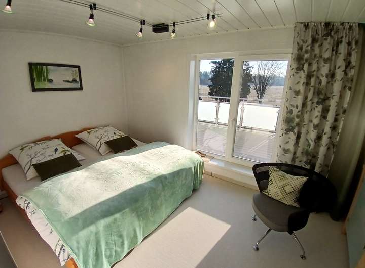 - Helles Wohnzimmer mit Zugang zur Terrasse und zum Garten