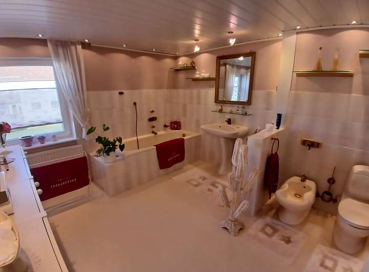 Bei einem Erwerb / Einzug ist die Gas-Heizungsanlage (Baujahr 1999) altersbedingt kurzfristig zu erneuern. Dies bietet die Gelegenheit auch alternative Wärmeversorgungskonzepte in Betracht zu ziehen. Weiterhin wäre es ratsam, eine Außenwand im Kellerbereich abzudichten. Bei starkem Hochwasser dringt Feuchtigkeit / Grundwasser an einer Stelle im Bereich der Küche (Kellergeschoss) ein. Das Badezimmer im 1. OG bietet aufgrund seiner Größe die Möglichkeit eine geräumige zeitgemäße Dusch- / Badewanne zu installieren.