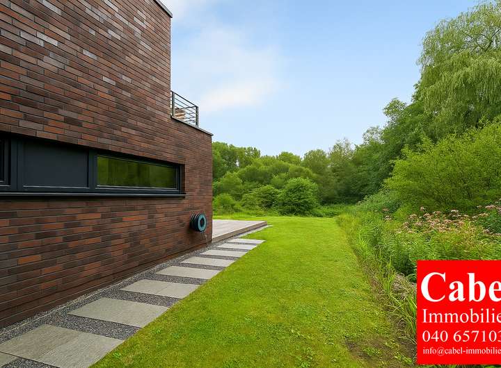 Wahrer Luxus definiert sich heute über den Schutz des Privaten. Das insgesamt ca. 3.483m² große Grundstück bietet genau diesen Rahmen. Während ca. 1.052 m als gärtnerisch gestaltetes Refugium dienen, grenzt der rückwärtige Teil des Anwesens mit ca. 2.431m² direkt an eine Naturschutzzone. Dieser unberührte Auwald der Saselbek fungiert als natürlicher Schutzwall und ist der Garant für eine weitreichende visuelle und akustische Abgeschiedenheit.