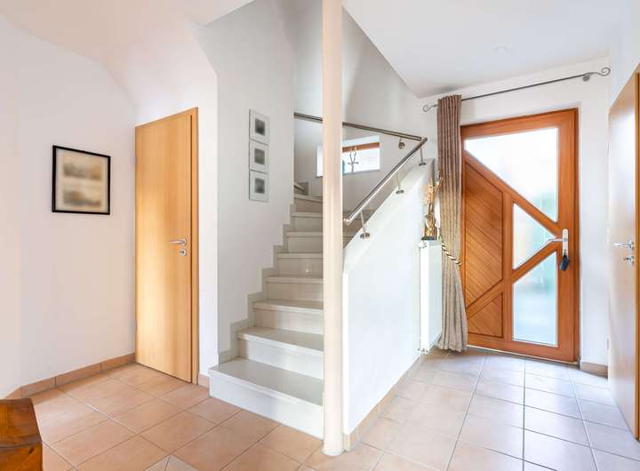Diese gepflegte Einfamilien-Doppelhaushälfte befindet sich auf einem ruhig gelegenen Hintergrundgrundstück und bietet mit ca. 108 m² Wohnfläche ein durchdachtes Raumkonzept für Familien oder Paare mit Platzbedarf. Die geschützte Lage abseits der Straße sorgt für ein hohes Maß an Privatsphäre und eine angenehme Wohnatmosphäre.