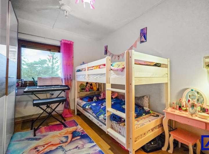 Das Obergeschoss beherbergt zwei Zimmer, die sich als Schlaf-, Kinder- oder Arbeitszimmer nutzen lassen, sowie ein Badezimmer mit Dusche.