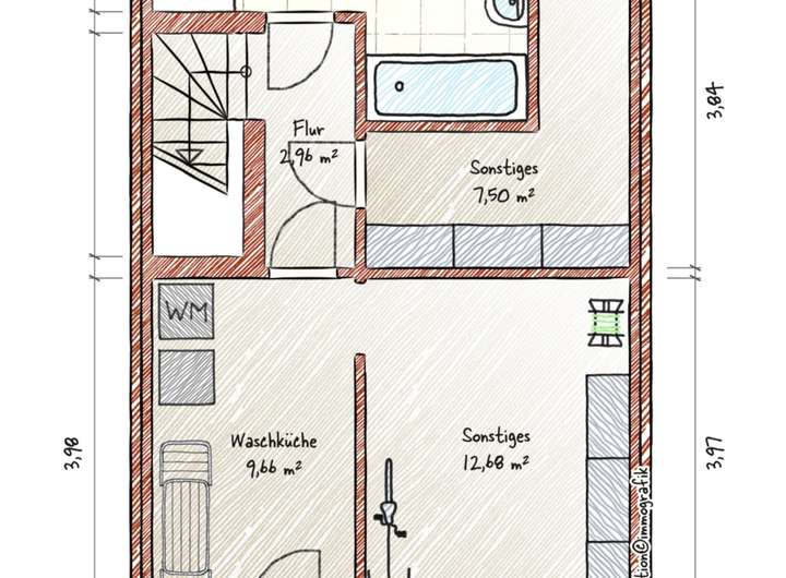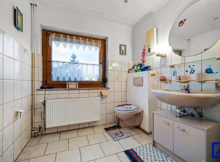 Das Haus ist vollständig unterkellert und bietet dadurch zusätzliche Nutzfläche mit vielfältigen Einsatzmöglichkeiten. Neben klassischen Abstell- und Wirtschaftsräumen befindet sich im Keller ein weiteres Badezimmer mit WC und Dusche sowie ein Waschmaschinenanschluss – ein praktischer Mehrwert im Alltag.