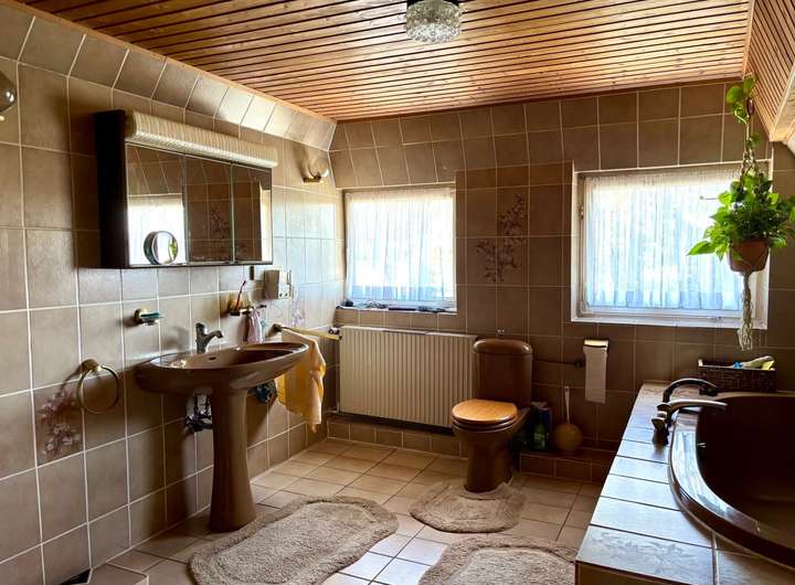 Insbesondere das Erdgeschoss bietet der Familie gutes Potenzial, die Wohnraumzahl zu erhöhen. Die moderne Gas-Heizungsanlage wurde ca. 2017 installiert, diese versorgt das Haus verlässlich mit Wärme und Warmwasser. Insgesamt zeigt sich die gesamte Haustechnik in gutem Zustand. Alle Wohnräume und die Küche präsentieren sich im Charme der ca. 80er und 90er Jahre und bedürfen sicherlich einer umfänglichen Renovierung.