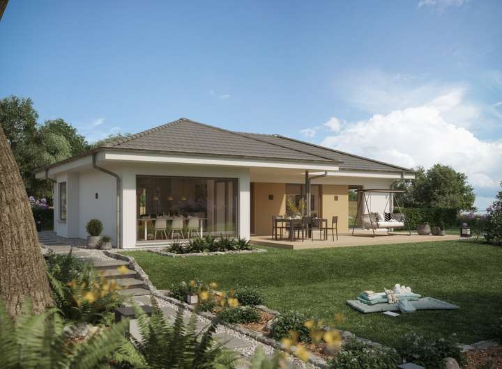 Die Ausstattung deines neuen Bungalows ist auf höchstem Niveau. Du erhältst eine hochwertige Traumküche, die perfekt auf deinen Grundriss abgestimmt ist. Das Zuhause-Paket umfasst moderne Böden, edle Türen und stilvolle Sanitäranlagen, alles optimal aufeinander abgestimmt und fix & fertig geliefert. Zudem profitierst du von einem hohen Vorfertigungsgrad, der den Bauprozess effizient gestaltet. Selbstverständlich sind auch alle essenziellen Bauversicherungen, eine 18-monatige Festpreisgarantie sowie die Baufinanzierungsschutz enthalten.