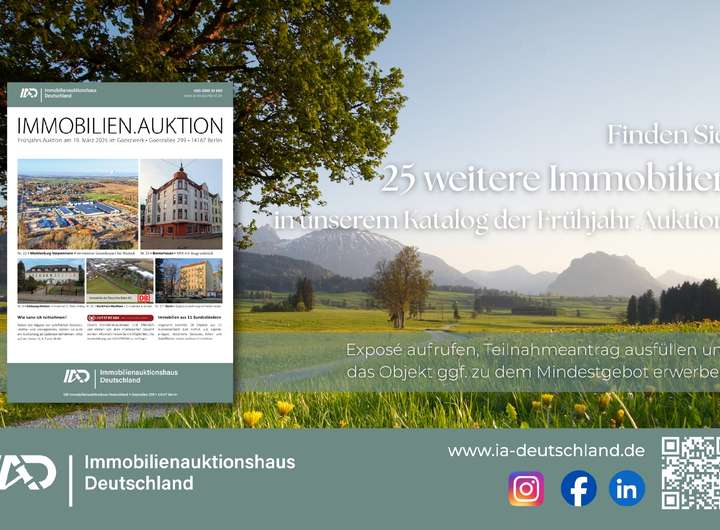 Am Auktionstag kommen weitere spannende Immobilien aus ganz Deutschland zum Aufruf. Unseren Katalog können Sie kostenlos auf www.ia-deutschland.de abrufen.
