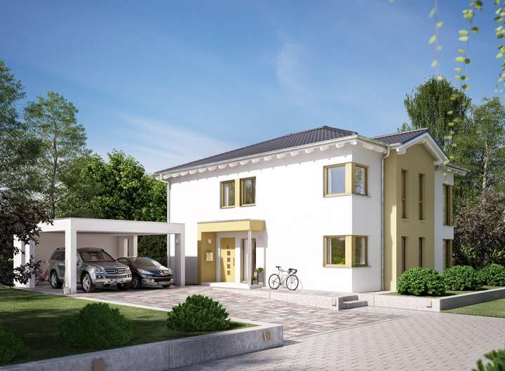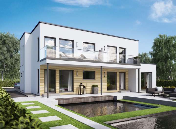 Dieses Fertighaus überzeugt durch eine exklusive Ausstattung, die auf deine Wünsche abgestimmt ist. Es erwartet dich eine moderne Architektur mit einem durchdachten Grundriss, der ausreichend Platz für deine Familie bietet. Die bodentiefen Fenster sorgen für lichtdurchflutete Räume und eine angenehme Wohnatmosphäre.