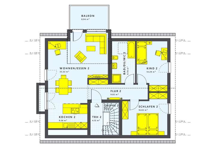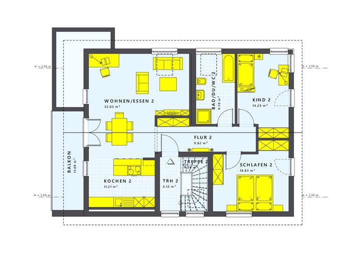 Die Küche ist nicht nur funktional, sondern auch optisch ein Highlight - maßgeschneidert für dein Zuhause. In den Badezimmern findest du edle Sanitäranlagen und stilvolle Fliesen, die den modernen Charakter des Hauses unterstreichen. Das Zuhause-Paket liefert dir eine hochwertige Grundausstattung, die keine Wünsche offenlässt.
