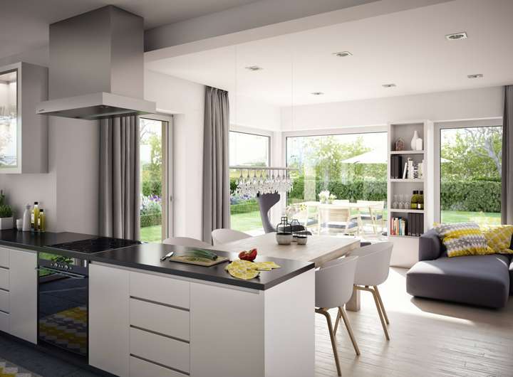 LivingHaus bietet dir zahlreiche zusätzliche Leistungen, die dein Bauprojekt zu einem einzigartigen Erlebnis machen. Die hochwertige Traumküche wird perfekt auf deinen Grundriss abgestimmt und mit modernster Technik sowie cleveren Stauraumlösungen ausgestattet, damit du gleich nach dem Einzug loslegen kannst. Mit der Living Haus Bau-App behältst du stets den Überblick über dein Bauprojekt und kannst alle wichtigen Informationen digital abrufen. Das I-KON-System ermöglicht dir ein intelligentes Bauen, das Nachhaltigkeit und modernste Technik vereint, damit dein Zuhause energieeffizient und umweltfreundlich wird.