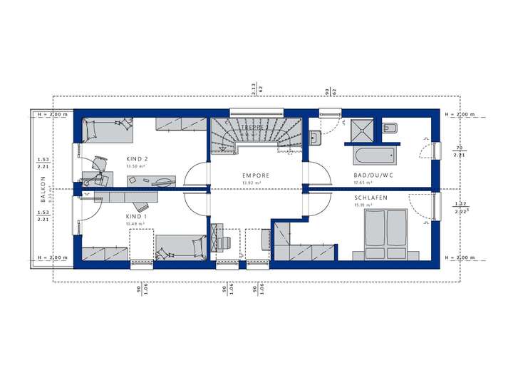 Der Grundriss des Bien-Zenker BALANCE 148 ist so konzipiert, dass er den Bedürfnissen einer modernen Familie gerecht wird. Mit drei einladenden Schlafzimmern und zwei funktionalen Badezimmern bietet Ihr zukünftiges Zuhause ausreichend Platz für alle Familienmitglieder. Die durchdachte Anordnung der Räume gewährleistet nicht nur Privatsphäre, sondern auch eine angenehme Raumwirkung, die das Zusammenleben fördert. Die lichtdurchflutete Empore fungiert als kreativer Rückzugsort und bringt eine besondere Leichtigkeit in den Wohnbereich.