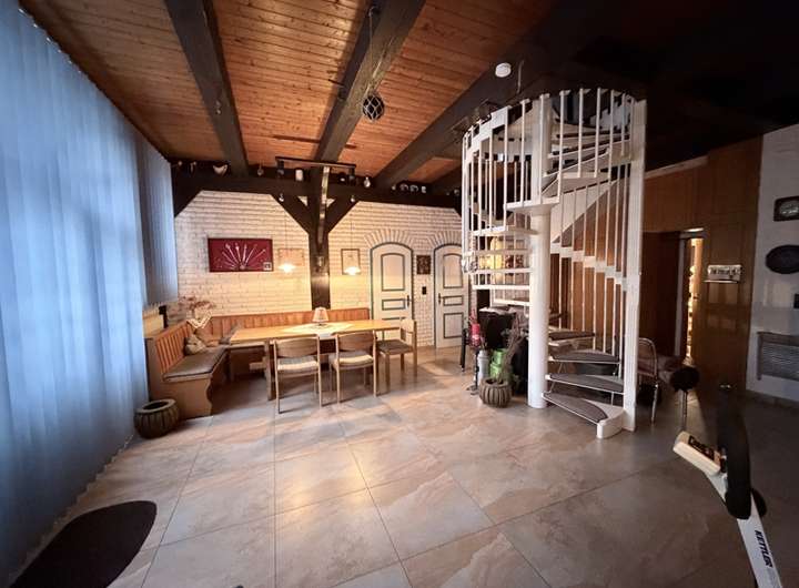 • Eine weitere Wohnküche mit Wendeltreppe ins EG und Zugang zum Spitzboden