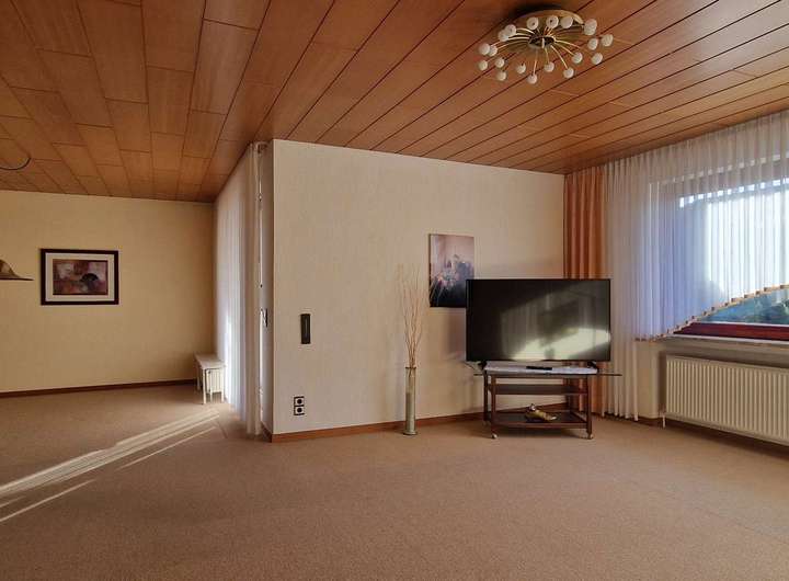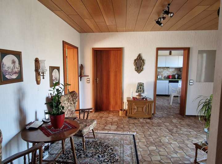 Das Erdgeschoss erstreckt sich über ca. 120 m² und empfängt Sie mit einem einladenden Flur, von dem aus alle Räume bequem erreichbar sind. Direkt angrenzend befindet sich das modernisierte Gäste-WC, bevor man in das großzügige, lichtdurchflutete Wohnzimmer gelangt, das mit seinem direkten Zugang zur überdachten Terrasse das Herzstück der Wohnebene bildet. Ergänzt wird das Raumangebot durch ein gemütliches Schlafzimmer, eine separate Küche, das frisch sanierte große Badezimmer sowie einen weiteren vielseitig nutzbaren Raum, der sich ideal als Büro, Gästezimmer oder Hobbyraum eignet.