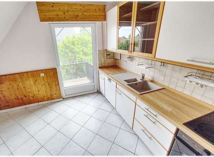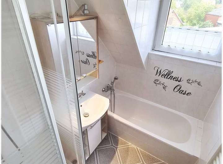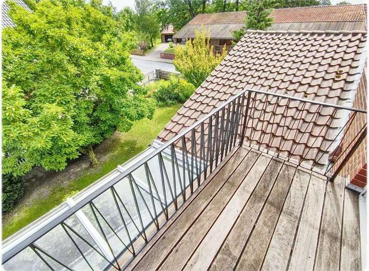 Im Obergeschoss des Hauptgebäudes erwartet Sie eine weitere 3-Zimmerwohnung (ca. 79 m² Wfl.) mit einer einladenden Küche und einem sonnigen Balkon. Ein weiteres Tageslicht-Duschbad und eine separate Toilette bieten höchsten Komfort.