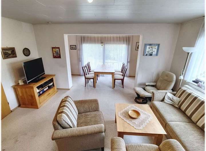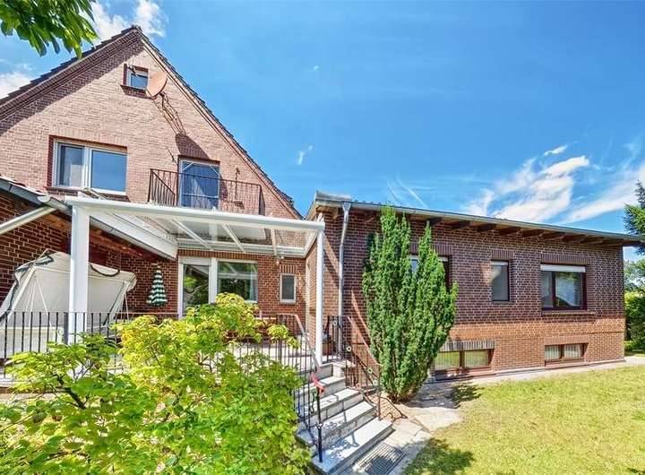 Willkommen in diesem großzügigen Wohnhaus, das mit seinen zwei separaten Wohnungen, einem gefragten Friseursalon, vier Garagen und einem einladenden Garten zahlreiche Möglichkeiten bietet.