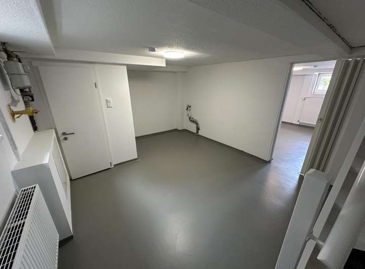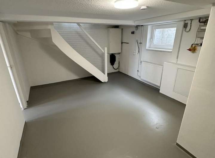 Der beheizte Vollkeller mit Außenzugang bietet vielseitige Nutzungsmöglichkeiten, sei es für Hobby, Stauraum oder Arbeiten von zu Hause.