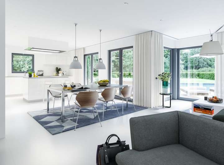 Die Ausstattung deines neuen Zuhauses lässt keine Wünsche offen. Du erhältst eine moderne Küche, die genau auf deine Bedürfnisse zugeschnitten ist, hochwertige Böden, edle Türen und stilvolle Sanitäranlagen. Alle Materialien sind optimal aufeinander abgestimmt und werden fix und fertig geliefert. Zudem profitierst du von einer 18-monatigen Festpreisgarantie, einer umfassenden Bauversicherung und einer 30-jährigen Garantie auf die Grundkonstruktion. Du wirst bei der Ausstattung professionell beraten, kannst ein Bodengutachten in Anspruch nehmen und hast Zugang zu modernen Heiztechniken, die für ein angenehmes Raumklima sorgen. Dein Fertighaus wird so nicht nur funktional, sondern auch ästhetisch ansprechend.