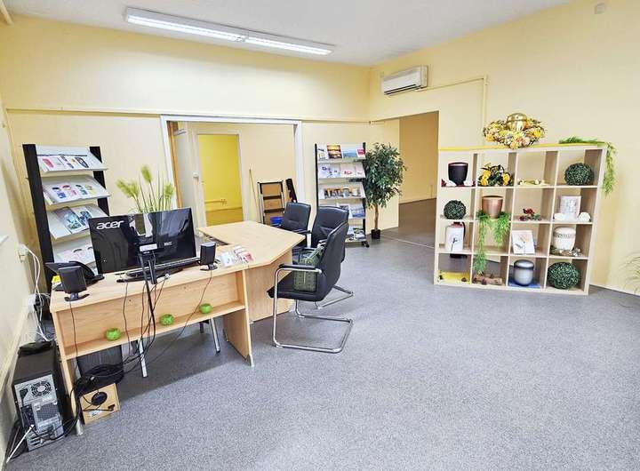 Gewerbeeinheit (Pietät) mit einer Nutzfläche von circa 128m², verteilt auf mehrere Ausstellungs- und Lagerflächen.
