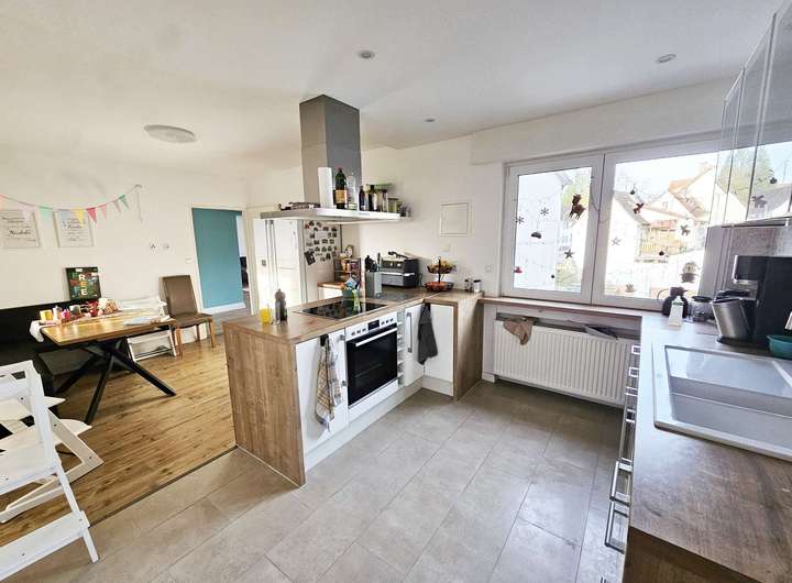 4-Zimmer-Wohnung mit einer Wohnfläche von circa 136m², mit einer Wohnküche inkl. moderner Einbauküche, Badezimmer mit Dusche, Badewanne und Waschmaschinenanschluss, 3 Schlafzimmer, Abstellkammer, zusätzliche Abstellmöglichkeiten auf einem Spitzboden, ein Abstellraum im Erdgeschoss