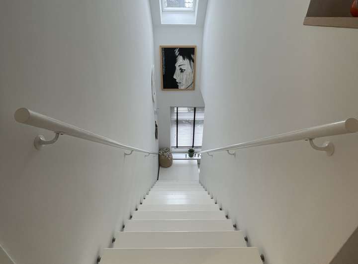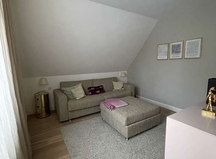 Besondere Highlights sind das Durchgangszimmer mit Ankleide, die weiße Holztreppe, ein praktischer Wäscheschacht sowie die stilvolle Gesamtgestaltung des Hauses. Der Außenbereich überzeugt mit einer Sandsteinumrandung, einer eleganten Holzhaustür und einem harmonischen architektonischen Gesamtbild.