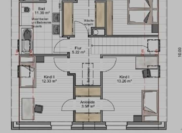 – ein Bad im Obergeschoss mit Dusche und Badewanne