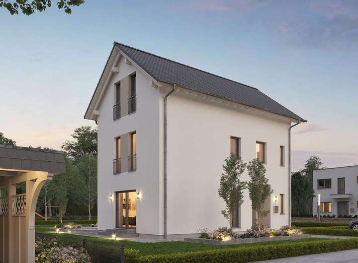 Bei dem Einfamilienhaus LifeStyle 19.01 S lässt sich stilvolles Wohnen auf drei Etagen realisieren. Auf einer Nettogrundfläche von ca. 190 m² überzeugt das Einfamilienhaus mit einer cleveren und durchdachten Raumaufteilung. Im Erdgeschoss bildet der kombinierte Wohn- und Essbereich den Mittelpunkt. In der ersten Etage befinden sich bis zu drei Kinderzimmer mit Bad. Das Elternschlafzimmer mit geräumiger Ankleide und Bad liegt in der obersten Etage unter dem formschönen Satteldach. Ein besonderes Plus für absolute Wellnessmomente ist ein zusätzlicher Wohnbereich mit integrierter Sauna. Durch bodentiefe Fenster werden sämtliche Räume mit Tageslicht versorgt und erzeugen den hellen, freundlichen Charakter des Einfamilienhauses.