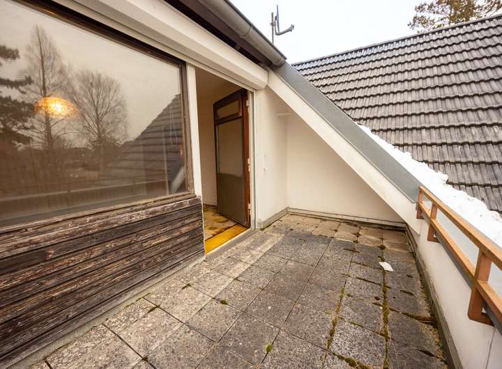Der gemütliche Wohnbereich teilt sich in zwei Bereiche ein und grenzt an die Terrasse mit Süd-Ausrichtung an. Dank seiner Großzügigkeit kann idealerweise auch ein Esszimmer eingerichtet werden. Die Räume wirken hell und freundlich und strahlen mit dem Eichenparkett Behaglichkeit aus. Angrenzend finden Sie eine Küche mit ausreichend Stauraum und einem integrierten Hauswirtschaftsraum vor. Die zentrale Diele verbindet diese Räume miteinander. Ein separates WC im Eingangsbereich komplettiert das Raumangebot.