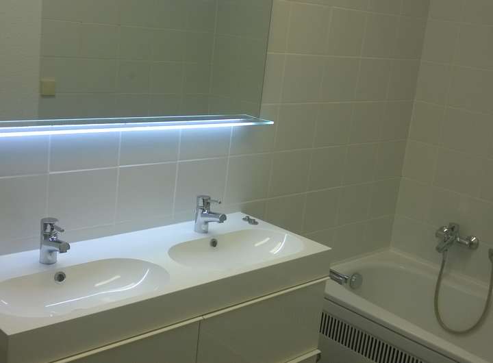 • Moderne Bäder mit Doppelwaschtisch und Badewanne