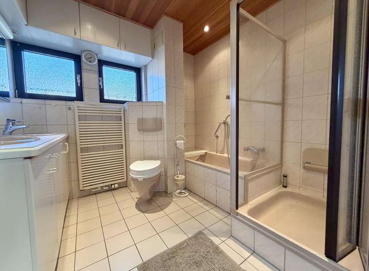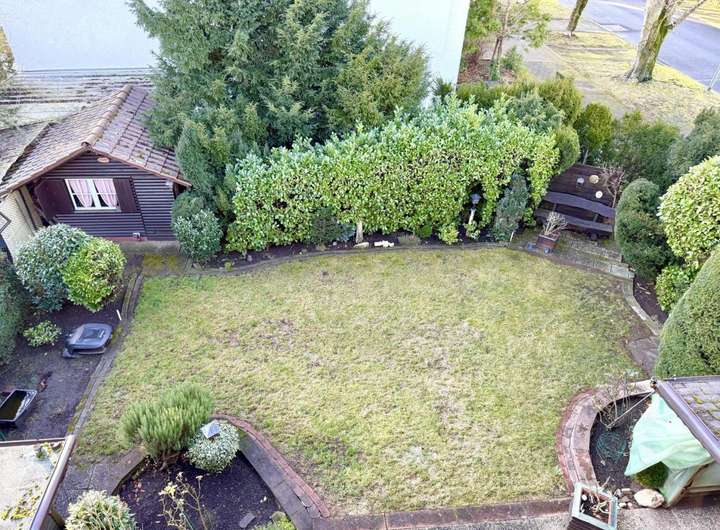 Eine Doppelgarage (hintereinander) mit direktem Zugang zum Garten rundet dieses Angebot ab.