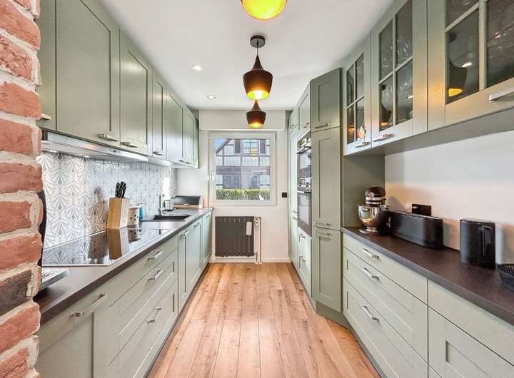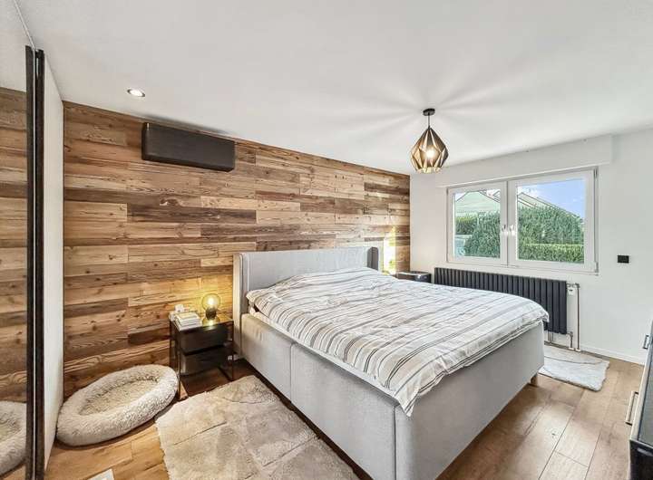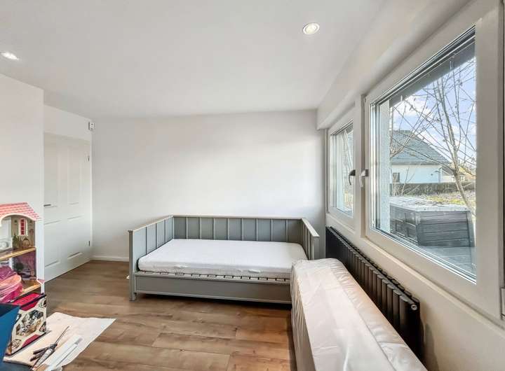 Auf einem ca. 411 m² großen Grundstück bietet das Haus ca. 138 m² Wohnfläche mit insgesamt fünf Zimmern sowie zusätzlich vielseitig nutzbare Räume im voll unterkellerten Untergeschoss. Die Raumaufteilung ist funktional und familienfreundlich gestaltet. Im Erdgeschoss befinden sich ein schöner Wohn- und Essbereich, eine Küche mit vorhandener Einbauküche, zwei Schlafzimmer sowie zwei modernisierte Badezimmer, eines davon als Bad en Suite. Das Untergeschoss erweitert das Platzangebot deutlich und bietet drei weitere wohnlich nutzbare Räume, die sich ideal als Homeoffice, Hobbybereich, Gästezimmer oder für heranwachsende Kinder eignen, ergänzt durch ein weiteres Badezimmer, einen Heizungsraum und Abstellflächen. Dadurch eignet sich die Immobilie auch hervorragend für Familien mit erhöhtem Platzbedarf oder für Menschen, die Wohnen und Arbeiten kombinieren möchten.