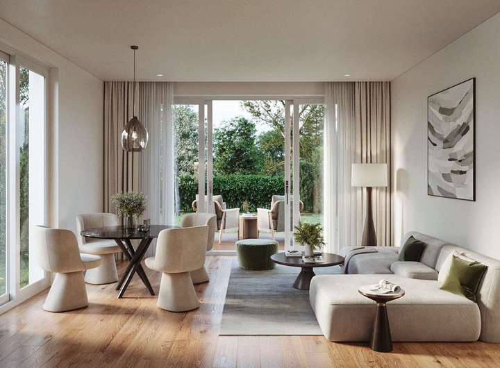 Errichtet in solider Massivbauweise und nach dem KfW-40-Standard, erreichen die Häuser die Effizienzklasse A+ und garantieren dauerhaft niedrige Nebenkosten. Eine Luft-Wärmepumpe, eine Photovoltaikanlage auf dem Dach sowie dreifach verglaste Fenster sorgen für energieeffizientes und ruhiges Wohnen. Hochwertige Ausstattungsdetails wie Echtholzparkett und Markenarmaturen von Villeroy & Boch unterstreichen den modernen, anspruchsvollen Charakter des Projekts. Zusätzlich profitieren Käufer von einem KfW-Förderkredit in Höhe von bis zu 100.000 EUR – ein zukunftssicheres Zuhause für höchste Wohnansprüche.
