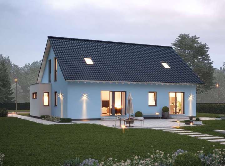 Im Kaufpreis enthalten ist dieses Einfamilienhaus mit 4 Kinderzimmern und der 40 qm großen Einliegerwohnung, das Baugrundstück, die Bodenplatte inkl. Bodengutachten, die Kompaktanlage Luft-Wasser-Wärmepumpe, eine kontrollierte Be- und Entlüftungsanlage mit Wärmerückgewinnung, die Innentreppe, das Material und Einbau für die Dämmung und Beplankung, Heizung- und Sanitärrohinstallation inkl. Fußbodenheizung, die Elektroinstallation, die KfW 40 Ausführung inkl. der 810 kWp Photovoltaikanklage sowie natürlich dieses herrliche Architektenhaus, von außen fix und fertig, inkl. Haustür, Fenster, elektrische Alu-Rollläden, Dachrinne, Dacheindeckung, Außenputz und Architektenleistungen. Gegen Aufpreis gibt es für dieses Haus auch einen Vollkeller und noch weitere Extras nach Ihren Wünschen. Baubeginn und Fertigstellung nach Absprache.