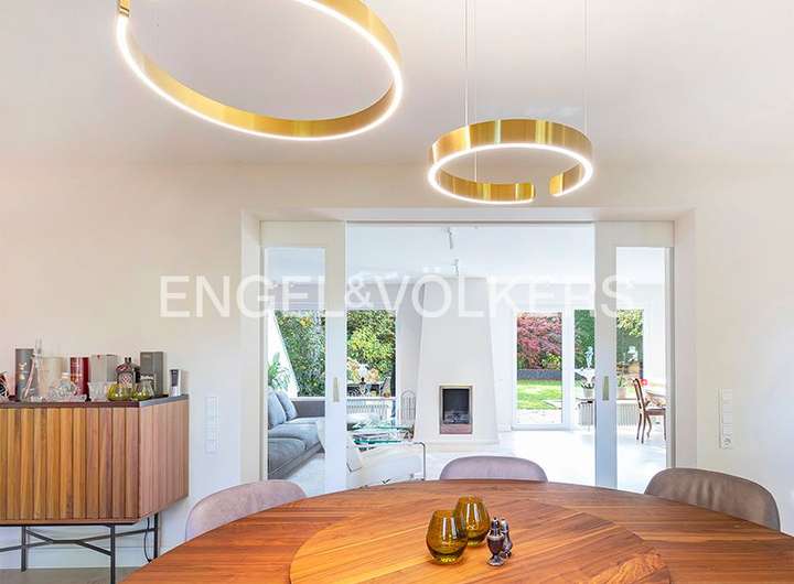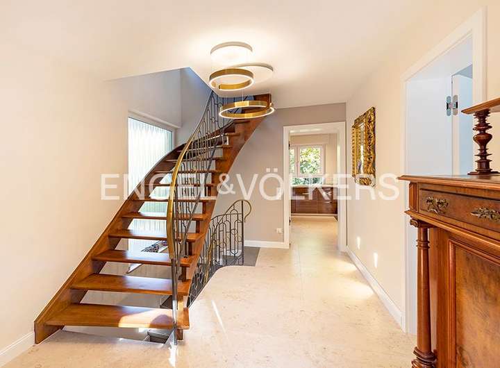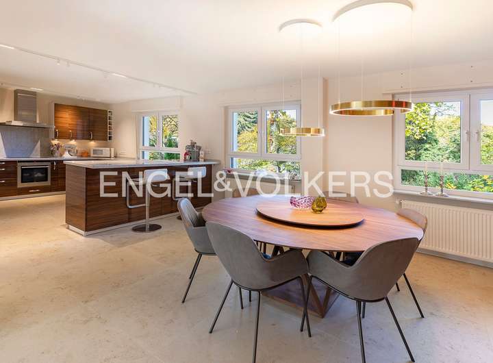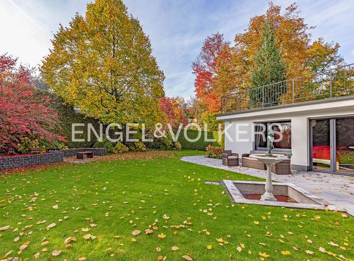 In einer der gefragtesten Villenlagen Königsteins, unmittelbar neben der renommierten Villa Andreae, erwartet Sie dieses Wohlfühlhaus auf einem traumhaft eingewachsenen Grundstück. Umgeben von altem Baumbestand und perfekt nach Südwesten ausgerichtet, genießen Sie hier absolute Privatsphäre und ein einzigartiges Wohnambiente. Die Villa wurde 2008 sowie 2021 hochwertig saniert und ist sofort bezugsfertig – ideal für Familien, die Wert auf Stil, Qualität und Komfort legen. Auf ca. 260 m² exzellent geplanter Wohnfläche überzeugt das Haus mit einem durchdachten Grundriss und lichtdurchfluteten Räumen, die einen direkten Bezug zur Natur schaffen. Der ca. 60 m² große Wohn- und Essbereich mit offenem Kamin bildet das Herzstück des Hauses und öffnet sich zur großzügigen Terrasse sowie dem liebevoll angelegten Garten mit Außenkamin – ein Ort zum Wohlfühlen und Verweilen mit Familie und Freunden. Die moderne Wohnküche ist mit hochwertigen Markengeräten ausgestattet und bietet ausreichend Platz für gemeinsames Kochen, Essen und Genießen. Im Obergeschoss befinden sich vier helle Schlafzimmer und ein modernes Bad. Der separate Elternbereich im Erdgeschoss überzeugt mit hochwertigem Eichenboden, eigenem Bad en Suite und einer geräumigen Ankleide. Ein besonderes Highlight ist die große Einliegerwohnung mit separatem Eingang – ideal für Gäste, ein Au-pair oder Homeoffice. Zusätzlich ermöglicht der wohnlich ausgebaute Dachboden vielfältige Nutzungsmöglichkeiten. Weitere Ausstattungsmerkmale: