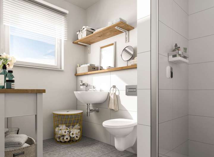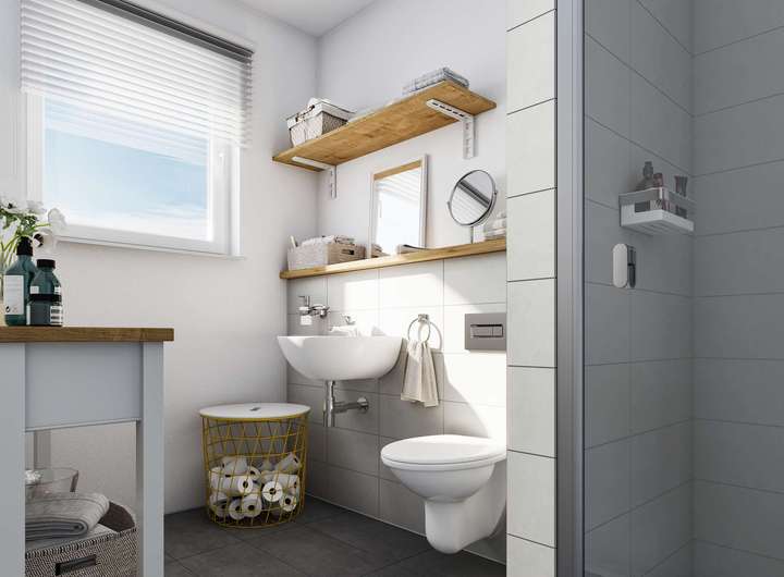 • Sanitärausstattung: Ihre Badezimmer sind voll ausgestattet. Dazu gehört auch eine bodengleiche Dusche.