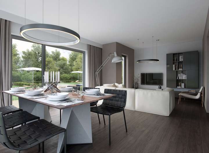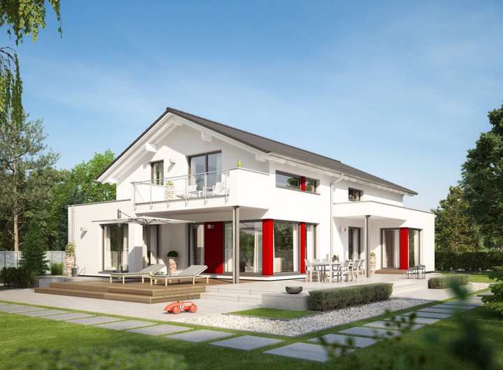 Das Bien-Zenker Haus CELEBRATION 211 ist ein ideales Zuhause für Familien und Paare, das mit viel Liebe und Ihren persönlichen Wünschen entworfen wird. Mit einer großzügigen Wohnfläche von 230 m² und einer durchdachten Raumgestaltung auf einem 1000 m² großen Grundstück bietet dieses elegante Zweifamilienhaus reichlich Platz für all Ihre Bedürfnisse. Die acht Zimmer, darunter vier einladende Schlafzimmer und zwei moderne Badezimmer, sind harmonisch miteinander verbunden und schaffen ein Gefühl von Offenheit und Geborgenheit. Das offene Wohn-, Ess- und Küchenkonzept fördert ein geselliges Miteinander und lässt viel Tageslicht in die Räume strömen, während die raumhohen Verglasungen und die individuellen Dachformen dem Haus einen modernen und einzigartigen Charakter verleihen.
