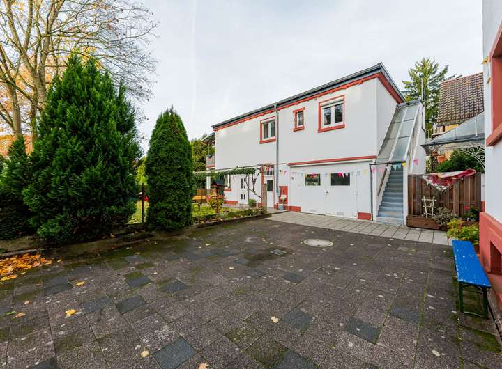 Angeboten wird ein charmantes Ensemble aus fünf Wohneinheiten auf einem großzügigen Grundstück. Im Vorderhaus befinden sich drei Wohnungen, im Hinterhaus zwei weitere Einheiten. Dank regelmäßiger Investitionen in den vergangenen Jahren präsentiert sich die Liegenschaft in einem sehr gepflegten Zustand.