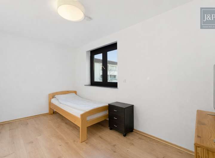 Aktuell verfügt jede Ebene über einen Schlafraum, ein modernes Tageslichtbad mit Dusche sowie einen Wohnbereich mit Küchenanschluss. Für eine klassische Familiennutzung lassen sich insbesondere im Erdgeschoss und im 1. Obergeschoss durch das Entfernen einzelner Trennwände großzügige, offene Wohn- und Essbereiche realisieren. Der Keller erweitert das Nutzungsspektrum erheblich: Neben Technik- und Hauswirtschaftsflächen stehen hier zwei wohnlich nutzbare Räume sowie ein modernes Badezimmer zur Verfügung. Diese Ebene eignet sich hervorragend als Gäste-, Jugend- oder Arbeitsbereich oder als nahezu eigenständige Wohnebene.