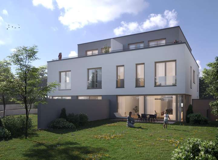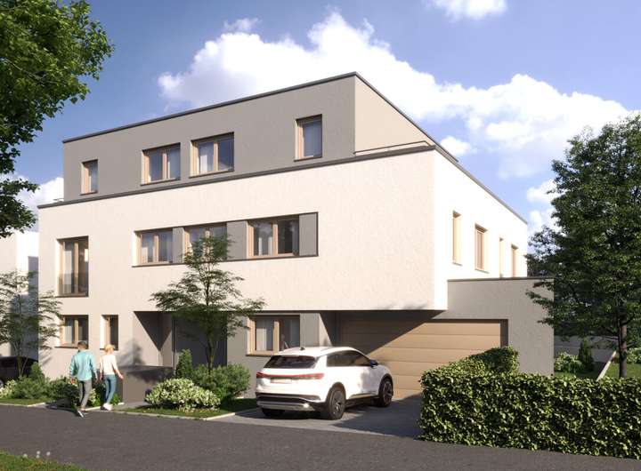 Diese moderne Doppelhaushälfte im Villenstil und großzügigem Raumkonzept überzeugt durch eine durchdachte Architektur, lichtdurchflutete Räume und ein großzügiges Platzangebot auf allen Ebenen.