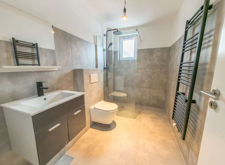 Das Haus verfügt über 2 moderne Badezimmer – eines mit einer komfortablen Badewanne für entspannte Wellnessmomente, das andere mit einer stilvollen Dusche.