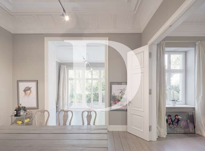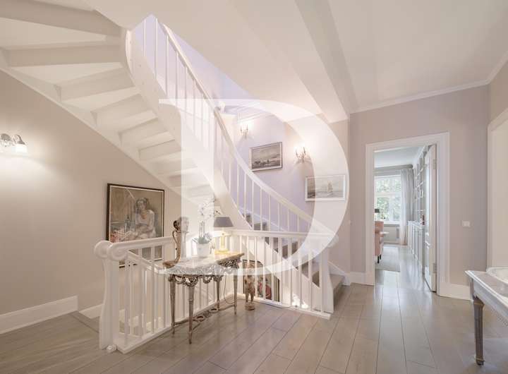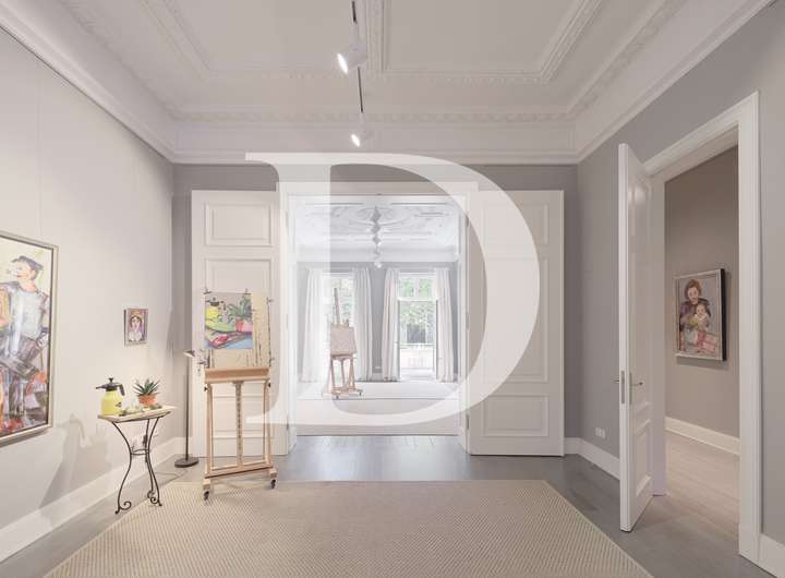 familiengerechte Aufteilung der Geschosse, hohe Decken, Hochparterre mit beeindruckendem Stuck, hervorragende Belichtung, hochwertige, teils bodentiefe Holzfenster nach historischem Vorbild, im Hochparterre historischer Dielenboden, klassische Stilelemente wie z.B. Stuck, Hamburger Fußleisten, Bodenbelag in den Wohnräumen der weiteren oberen Etagen mit neuen massiven Holzdielen und Trittschalldämmung, glatte, feingespachtelte Wände, hochwertige Tischlerarbeiten und Innentüren, Alarmanlage mit Glasbruch und Stößelkontakt, sonnendurchflutete Endetage mit Panorama-Schiebetüren zur großen Terrasse, vielfältige Nutzungs- und Gestaltungsmöglichkeiten