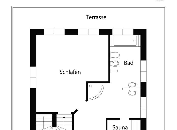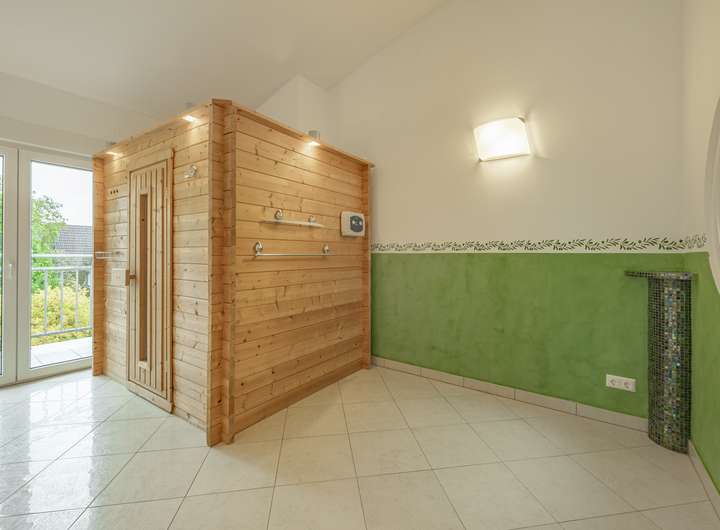 Suite, das Sauna, Badewanne und Dusche beinhaltet. Ein Highlight ist hier die 270-Grad-