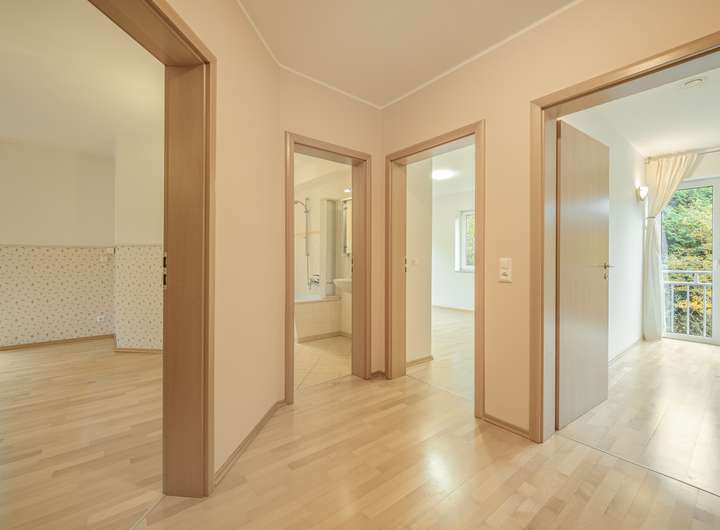 Schlafräume des Hauses sowie die Flure sind mit einem Parkettboden ausgelegt, das den